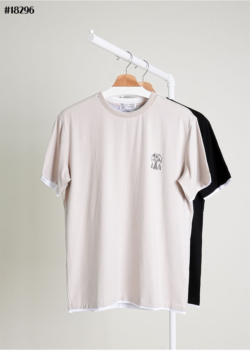 [BRUNELLO CUCINELLI] 브루넬로 쿠치넬리 시그니처 로고 패치 레이어드 숏 슬리브 코튼 티셔츠