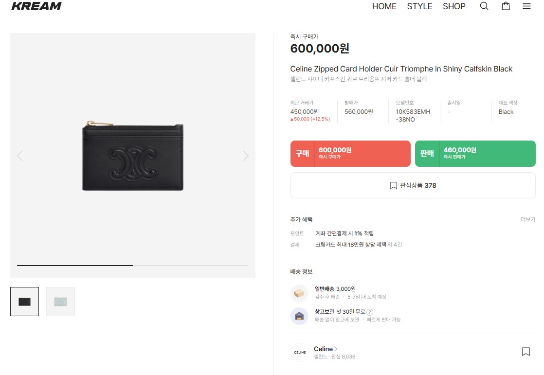 셀린느 퀴르 트리옹프 지퍼 카드 홀더