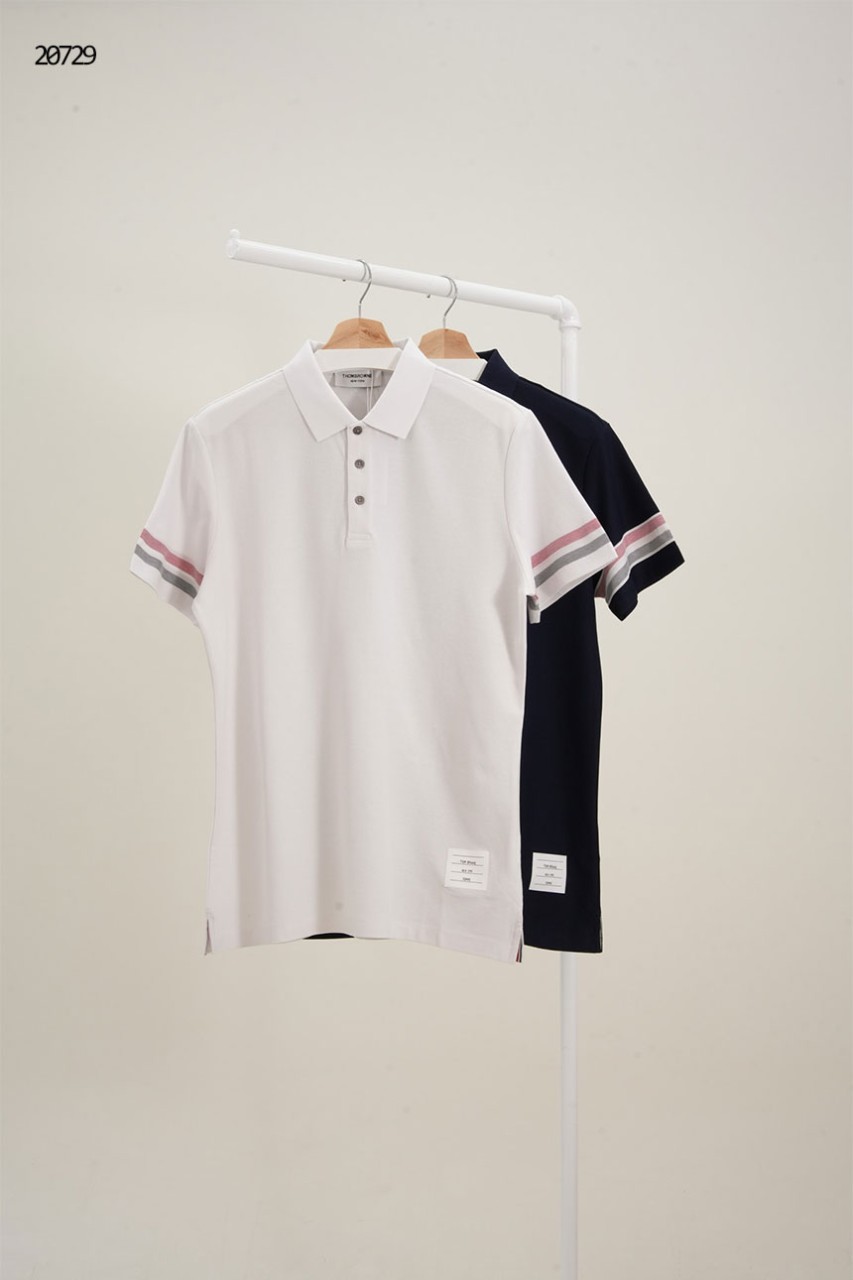 [THOM BROWNE] 톰브라운 TB로고 패치 반팔 카라 티셔츠