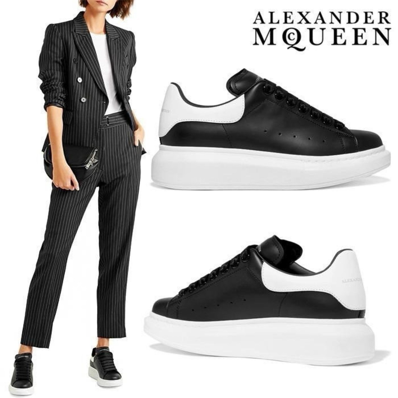 알 맥퀸 오버솔 블랙 화이트탭