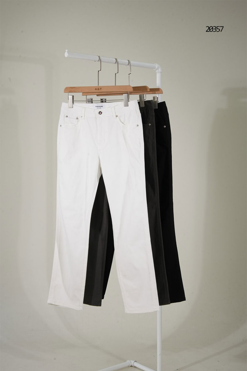 [THOM BROWNE] 톰브라운 스틸 레더 패치 스트레이트 팬츠