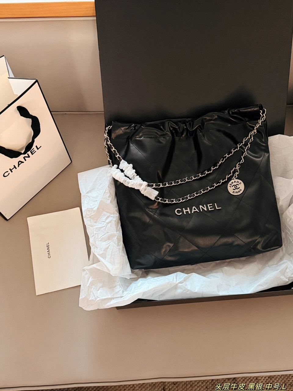 샤넬 22 샤이니 실버 메탈블랙백