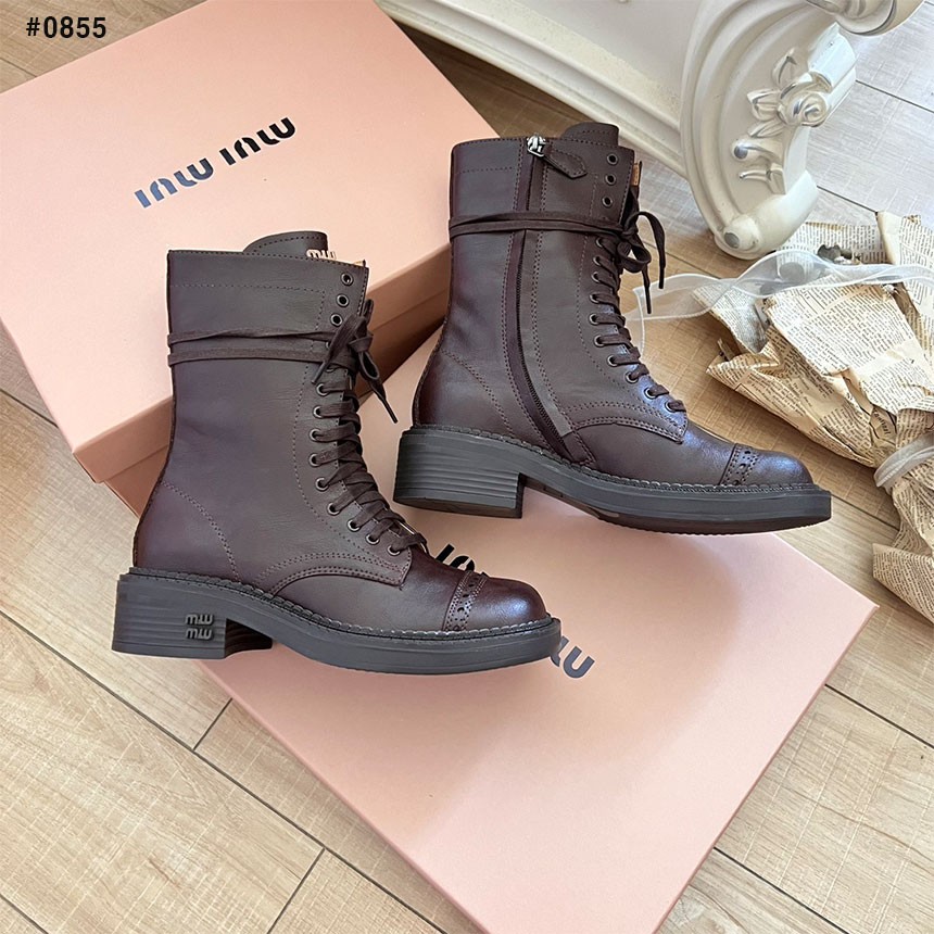 [MIU MIU] 미우미우 가죽 레이스 부티 숏 부츠