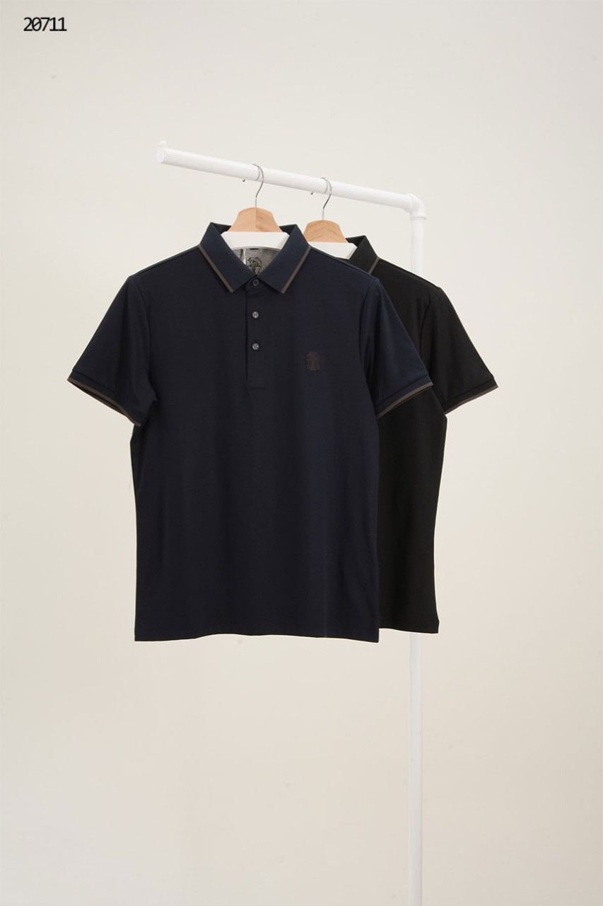 [LORO PIANA] 로로피아나 엠보 라인 포인트 기능성 카라 반팔 티셔츠