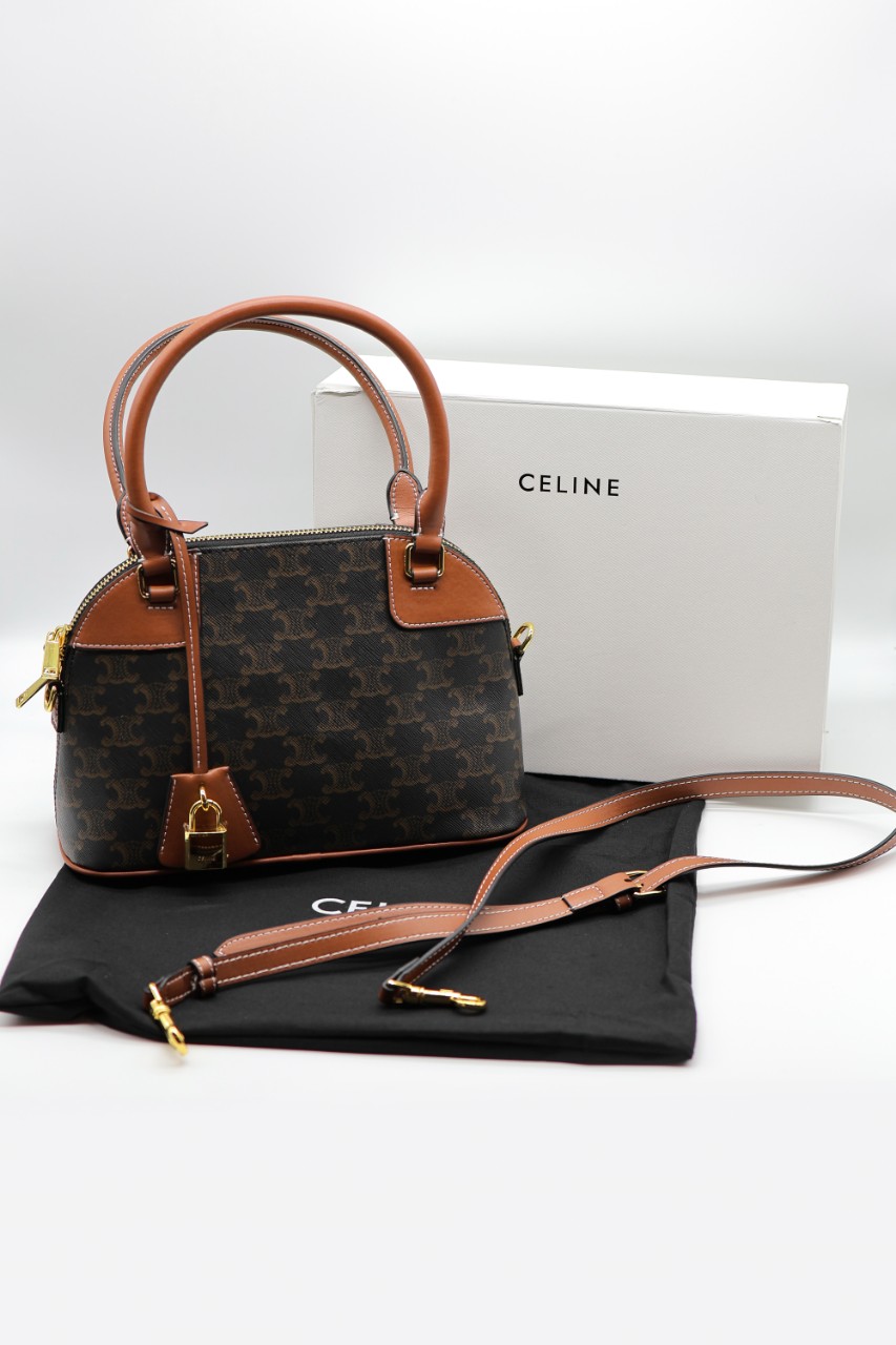 셀린느 스몰 볼링 트리오페 캔버스 여성 토트 크로스백