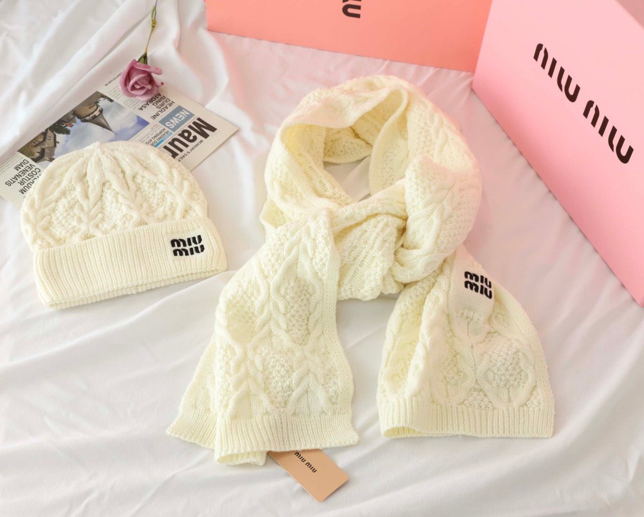 미우미우 [ miu ] 수입 케이블 니트 캐시미어 비니 스카프 2종 SET --