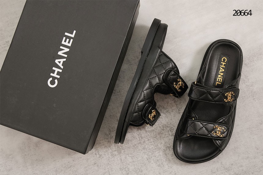 [CHANEL] 샤넬 벨크로 레더 슬리퍼