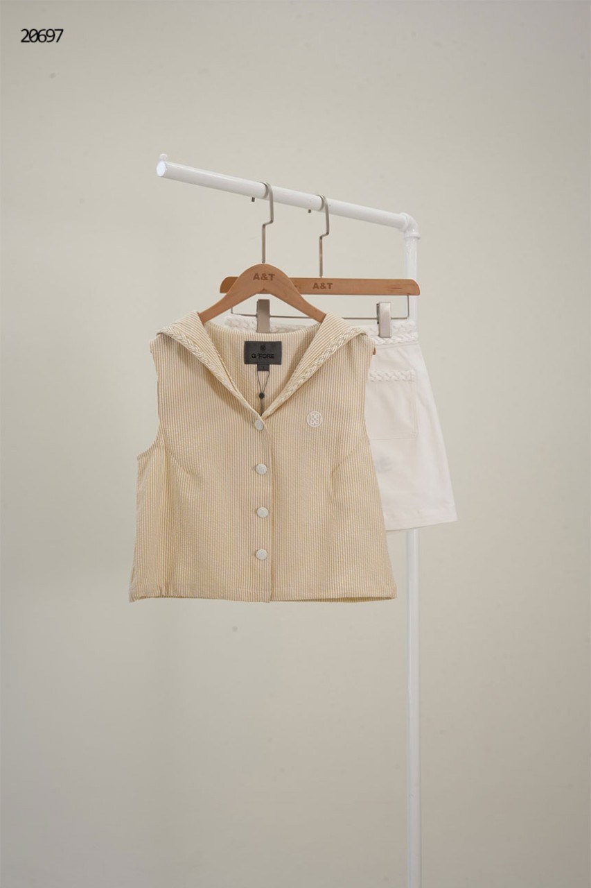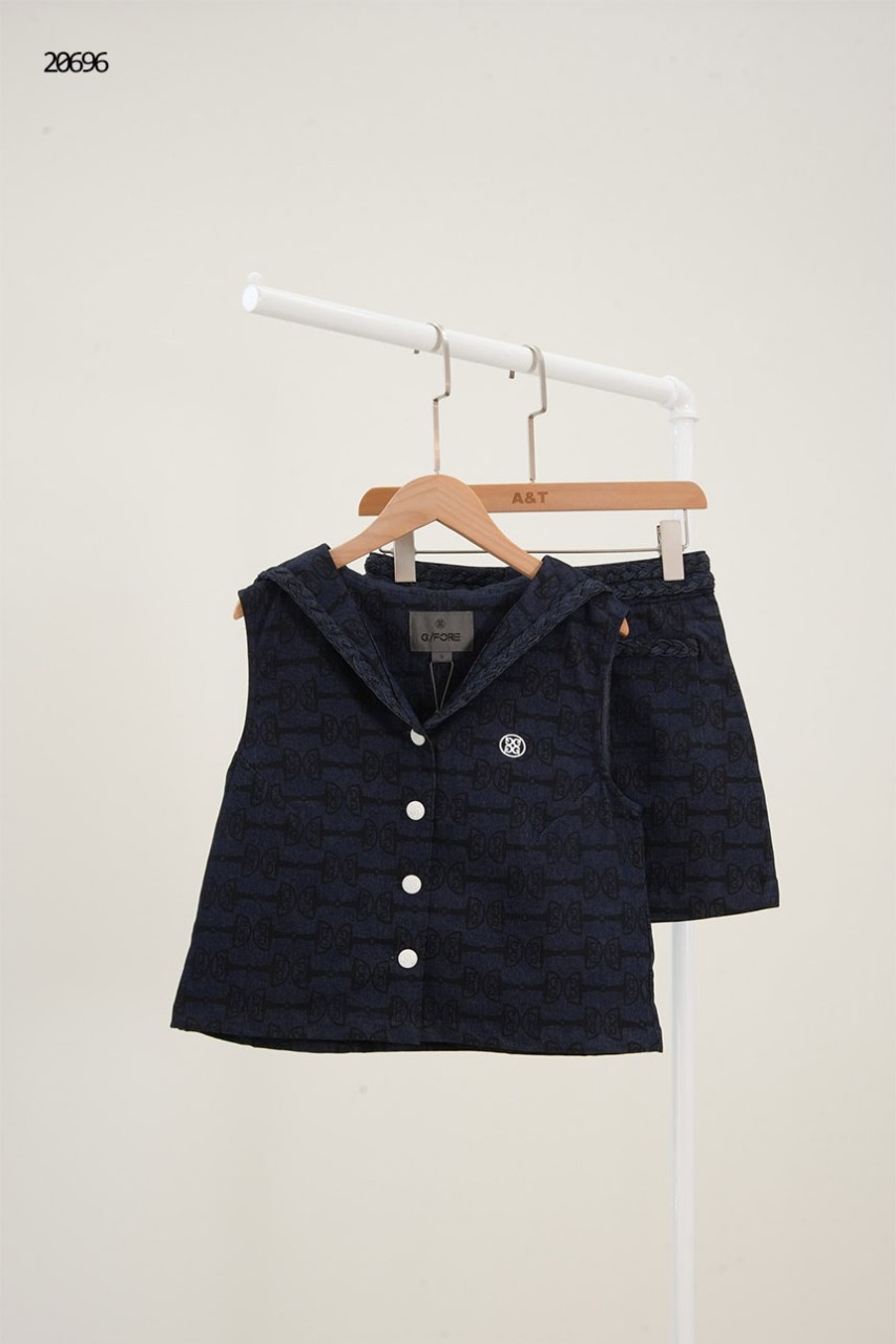 [G/FORE] 지포어 여성 스트라이프 러 베스트 & 포켓 로프 포인트 데님 스커트 셋