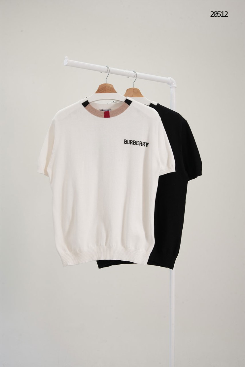 [BURBERRY] 버버리 체크 라운드넥 니트 반팔 티셔츠
