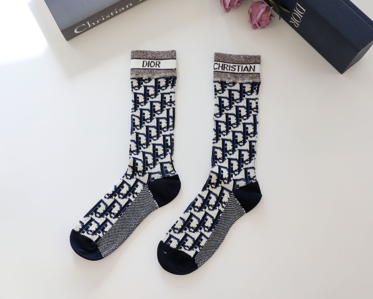 디올 [ D*OR ] 수입 오블리크 테크니컬 코튼 미들 삭스