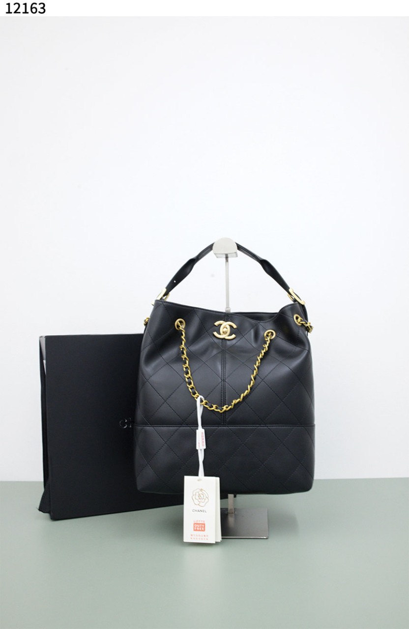 샤넬 [Chanel] 쇼핑백 카프스킨 & 골드 메탈 블랙