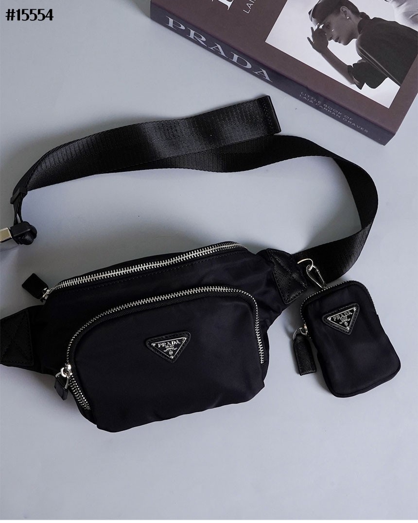 [PRADA] 프라다 리나일론 삼각 로고 스퀘어 벨트 백