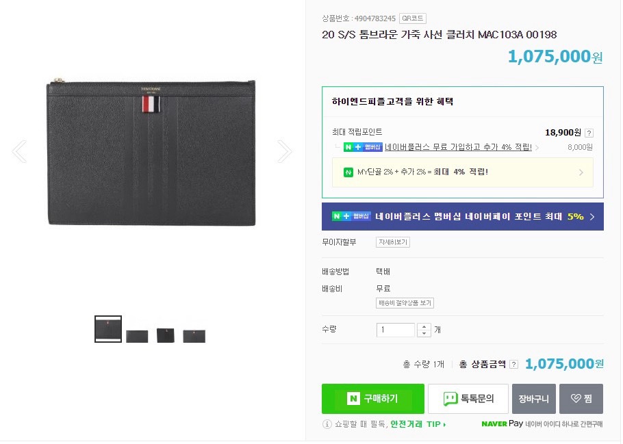 톰X라운 THOM BROWNE 사선 가죽 클러치백