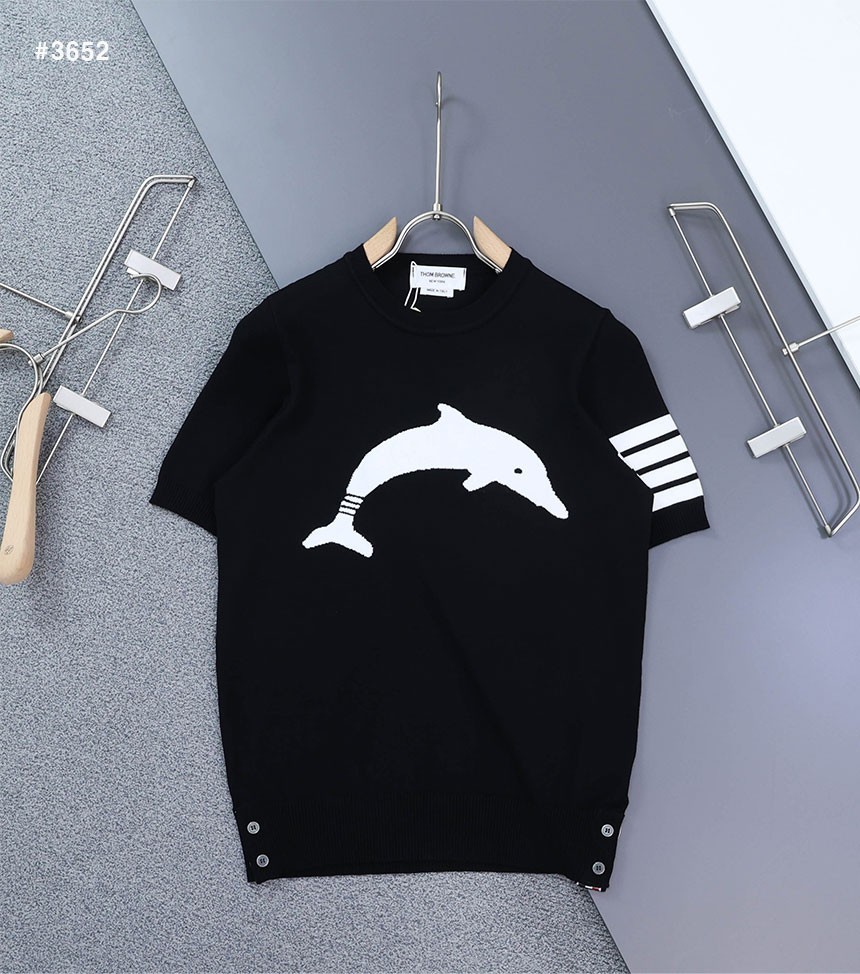 [THOM BROWNE] 톰브라운 돌핀 인타르시아 라운드 반팔 니트