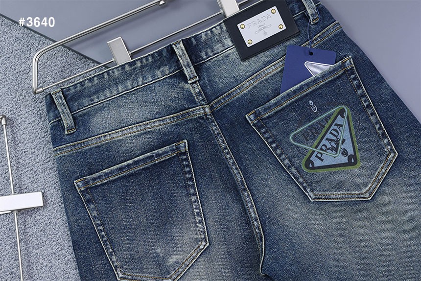 [PRADA] 프라다 삼각로고 프린팅 로고 워싱 데님 팬츠