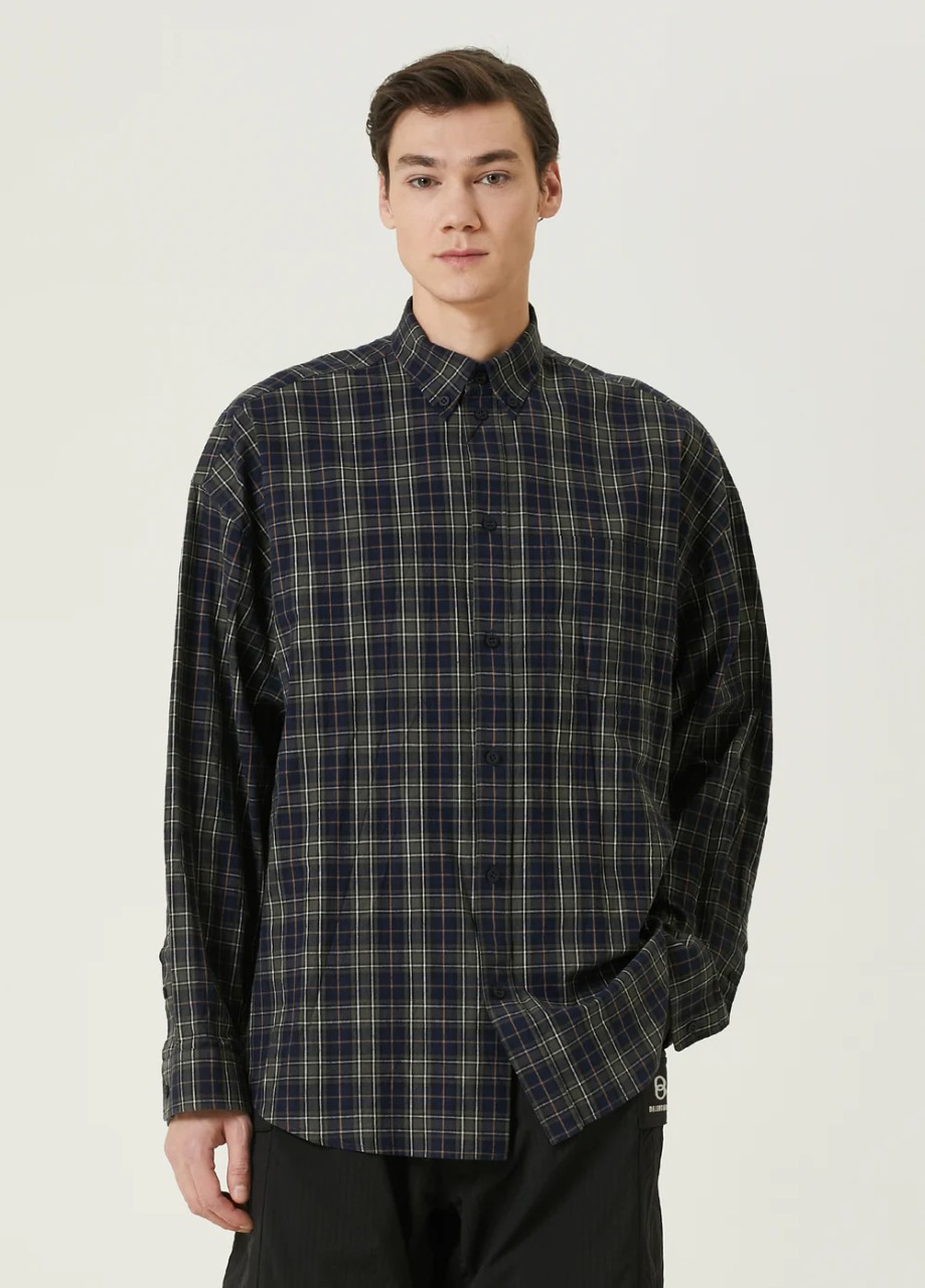 발렌시아가 백로고 플란넬 체크 셔츠