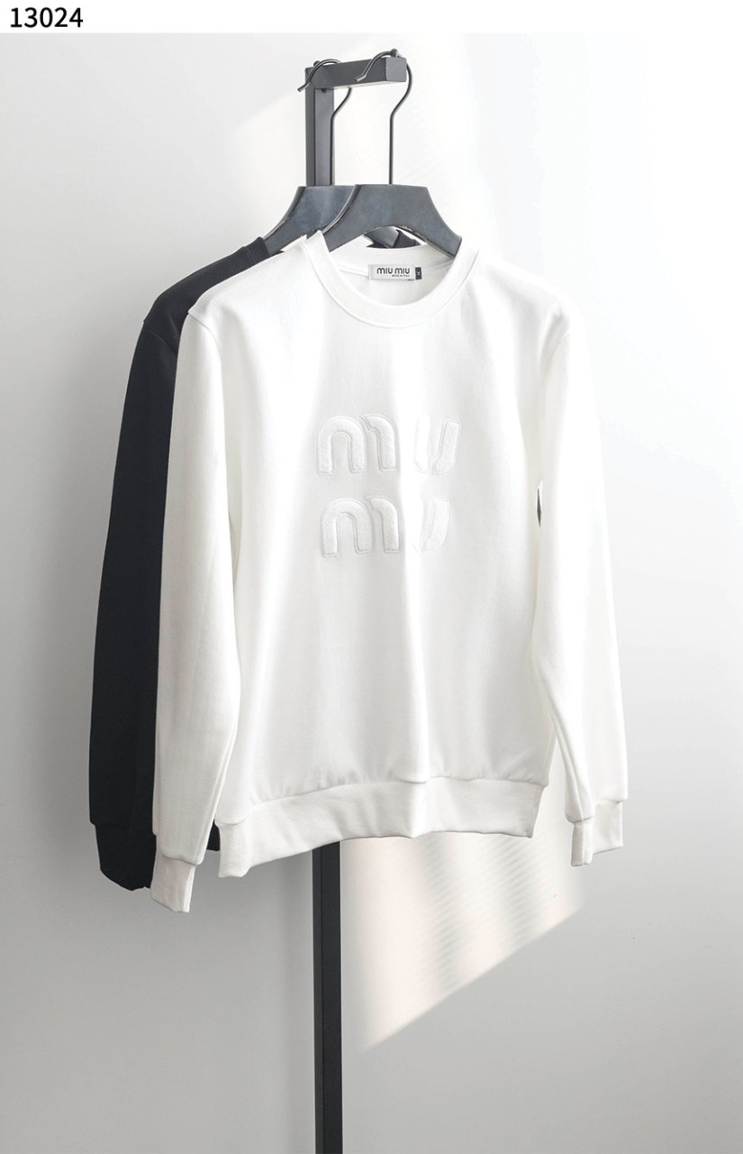 미우미우 [MIU MIU] 레터링 로고 패치 크루넥 맨투맨