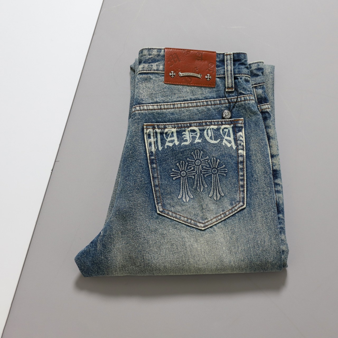 크롬하츠 [ CROME ] 수입 브라운 레더패치 포켓로고 데님팬츠