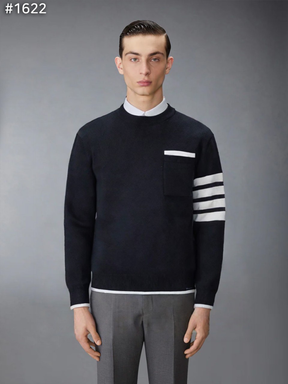 톰브라운 밀라노 스티치 티핑 크루넥 니트 스웨터