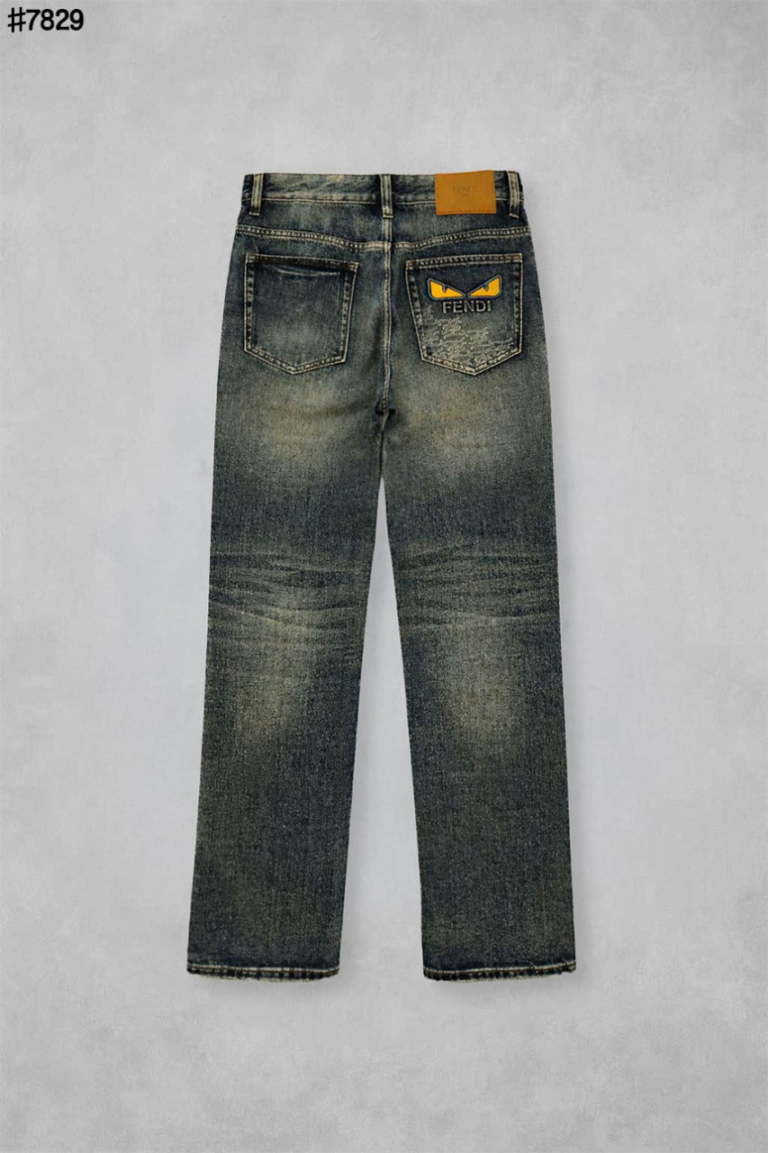 [FENDI] 펜디 레더 패치 스터드 아이 스트레이트핏 워싱 데님 팬츠
