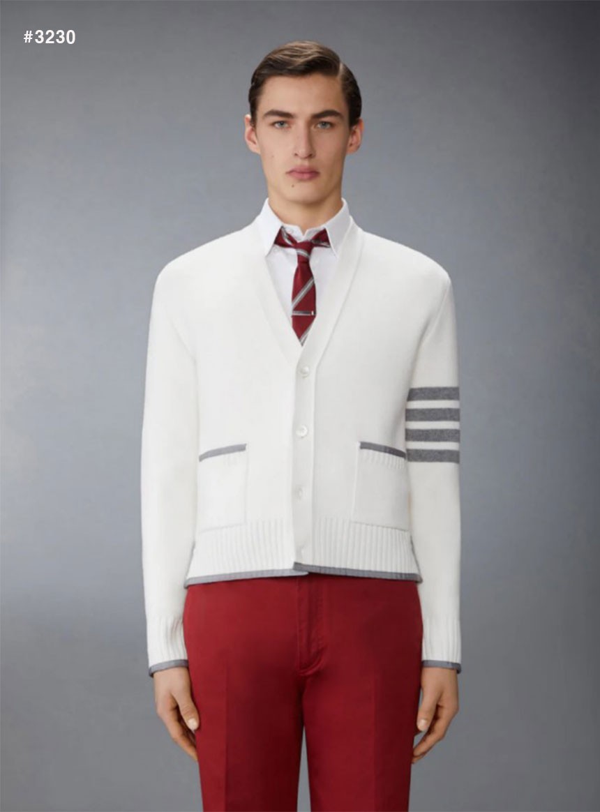[THOM BROWNE] 톰브라운 밀라노 4바 스티치 브이넥 가디건