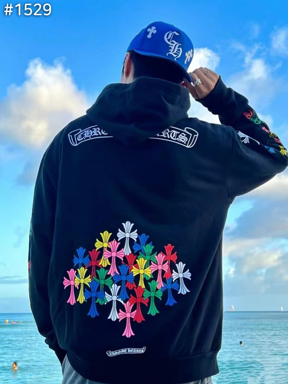 크롬하츠 멀티 컬러 크로스 집업 후드