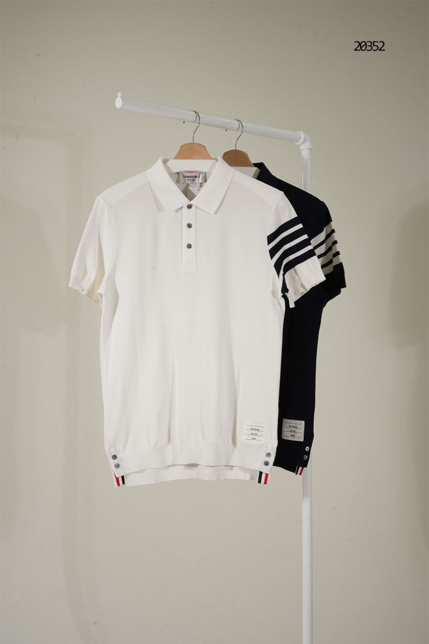 [THOM BROWNE] 톰브라운 4선 스트라이프 카라 반팔 티셔츠