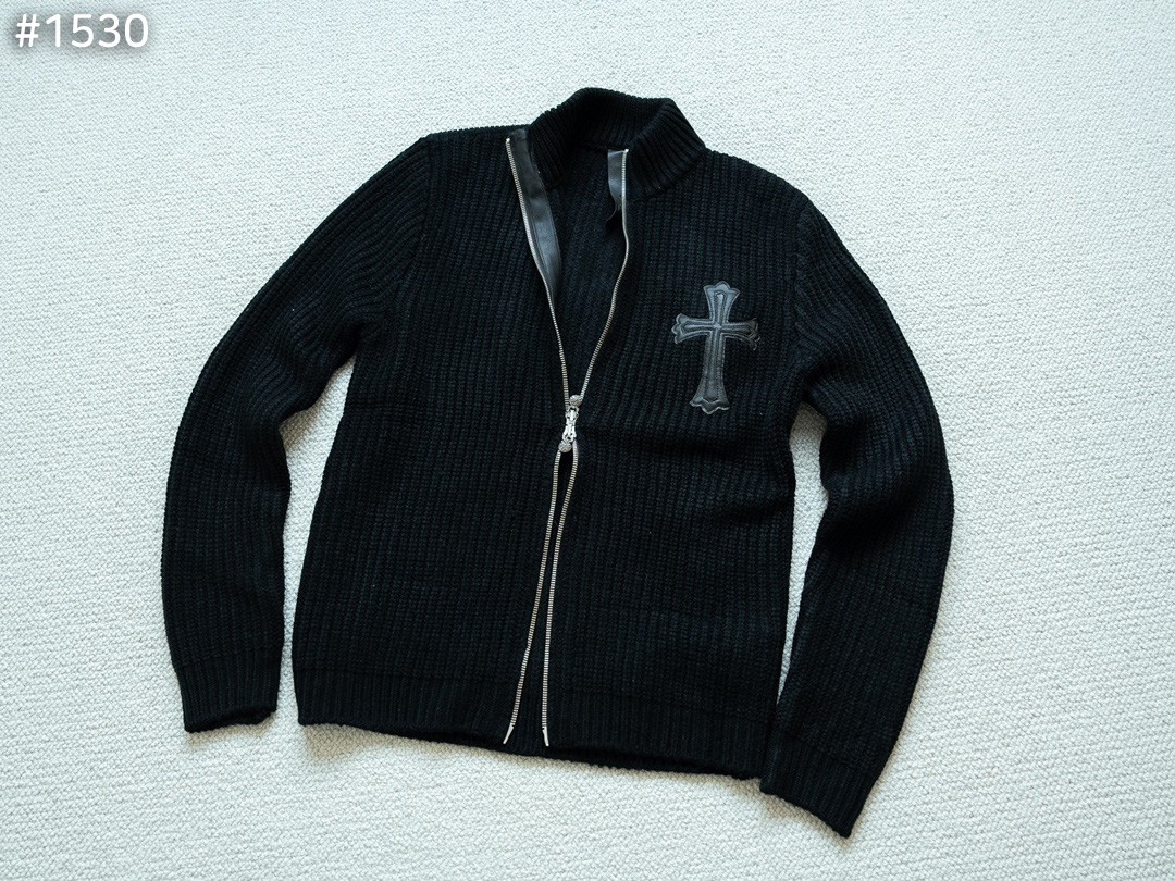 크롬하츠 레더 크로스 집업 니트 가디건