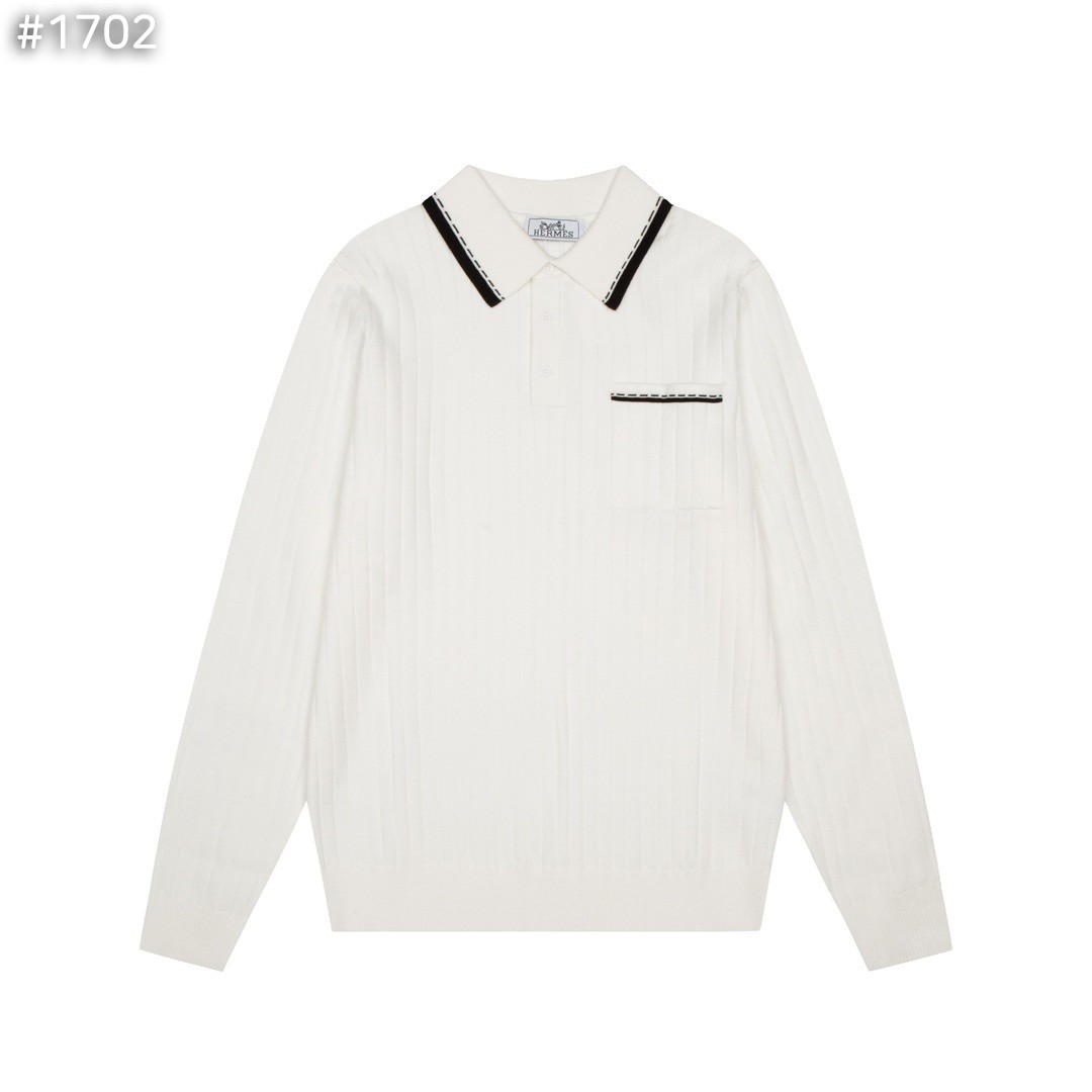 에르메스 카라 배색 골지 니트