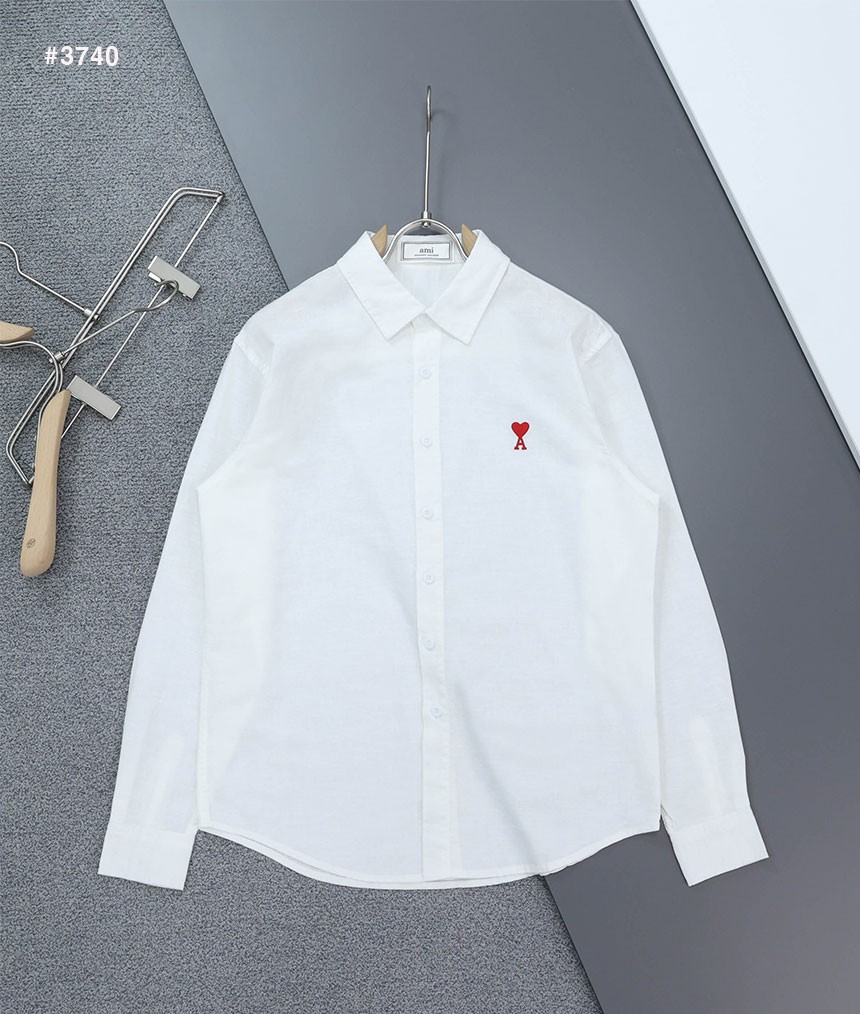 [AMI] 아미 스몰하트 로고 린넨 셔츠