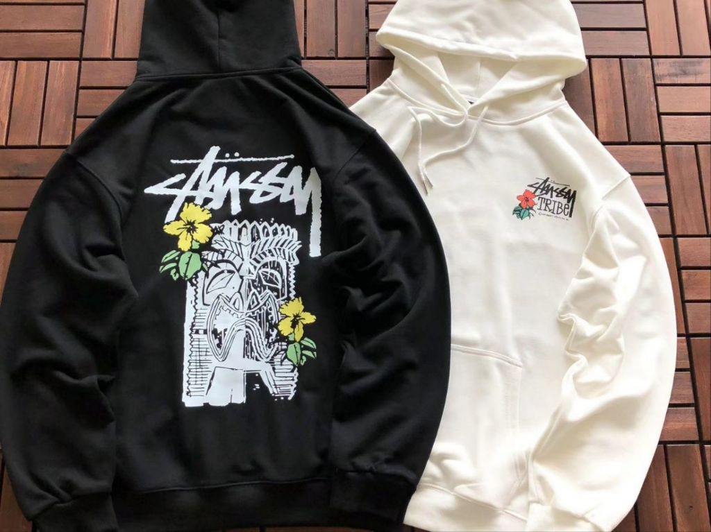 스투시 x 본앤레이즈드 로고 후드 집업 블랙