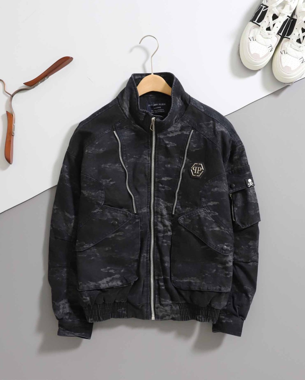 필립플레인 [ P.P ] 블랙 카모플라쥬 보머 재킷