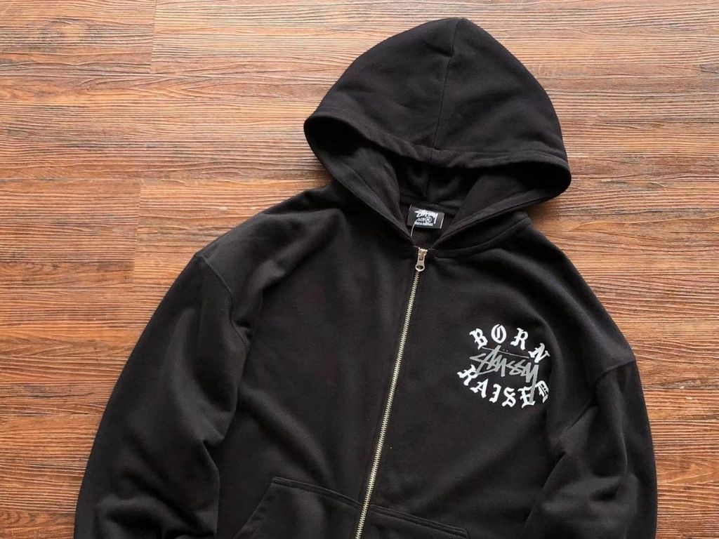 스투시 x 본앤레이즈드 로고 후드 집업 블랙