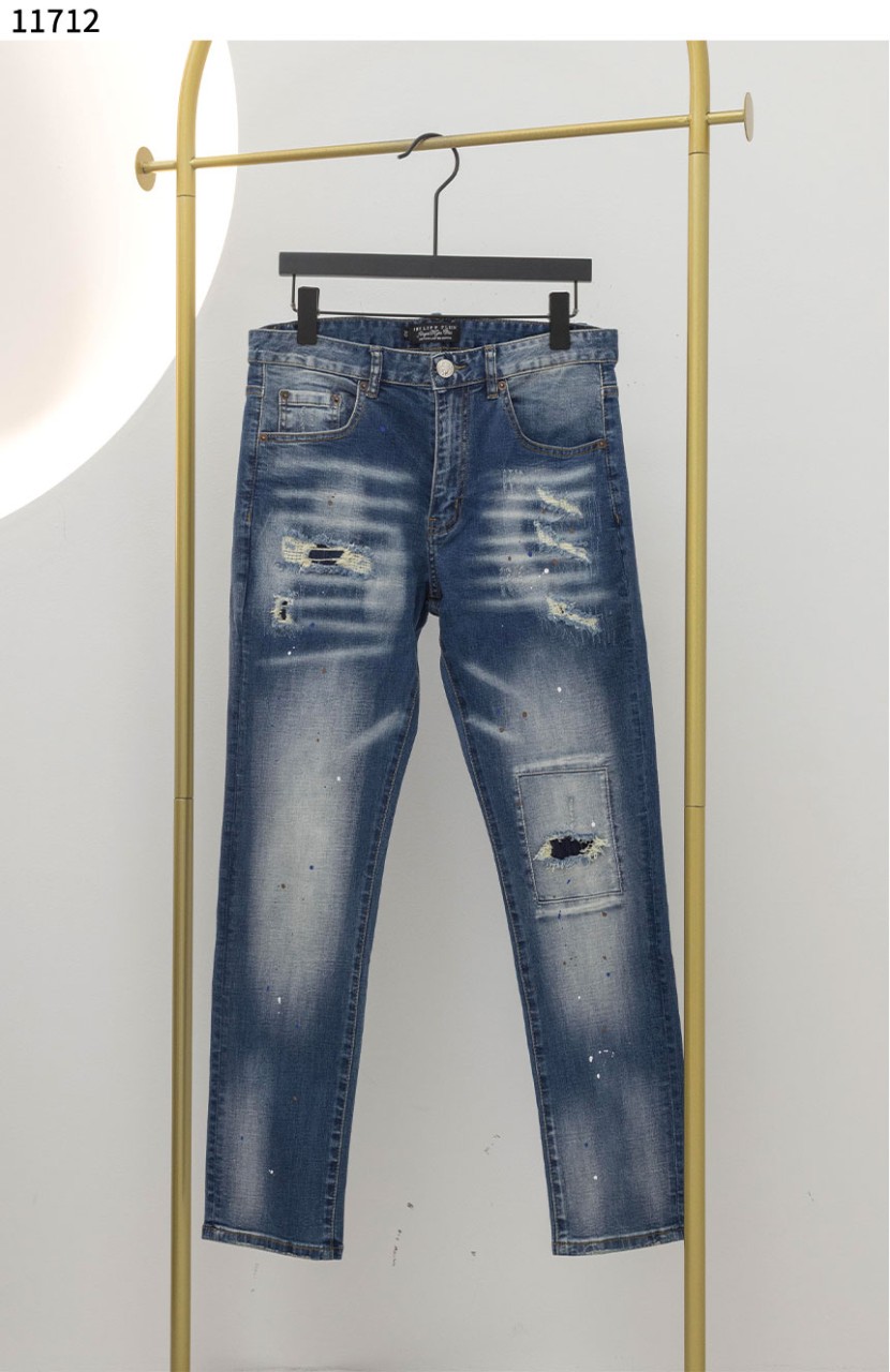 필립플레인 [PHILIPP PLEIN] 남성 페인팅 패치워크 일자 청바지