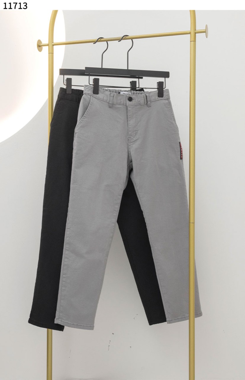 [PRADA] 프라다 남성 스틸 삼각 로고 모티프 코튼 슬렉스 팬츠