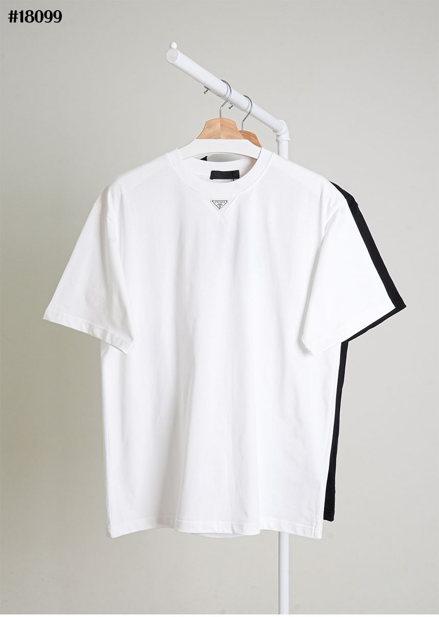 [PRADA] 프라다 삼각 로고 베이직 코튼 크루넥 티셔츠