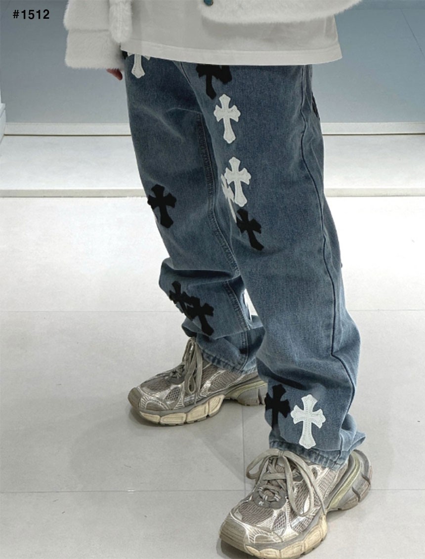 [CHROME HEARTS] 크롬하츠 블랙 화이트 크로스 패치 데님진