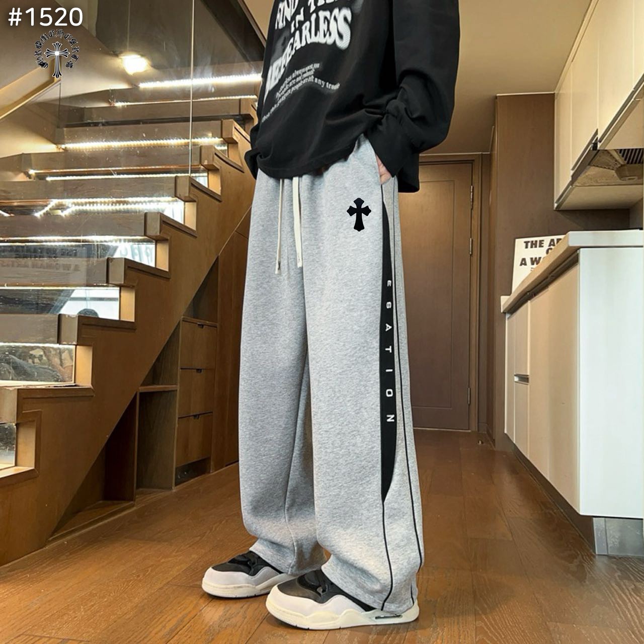 크롬하츠 크로스 코튼 와이드 스웻 팬츠