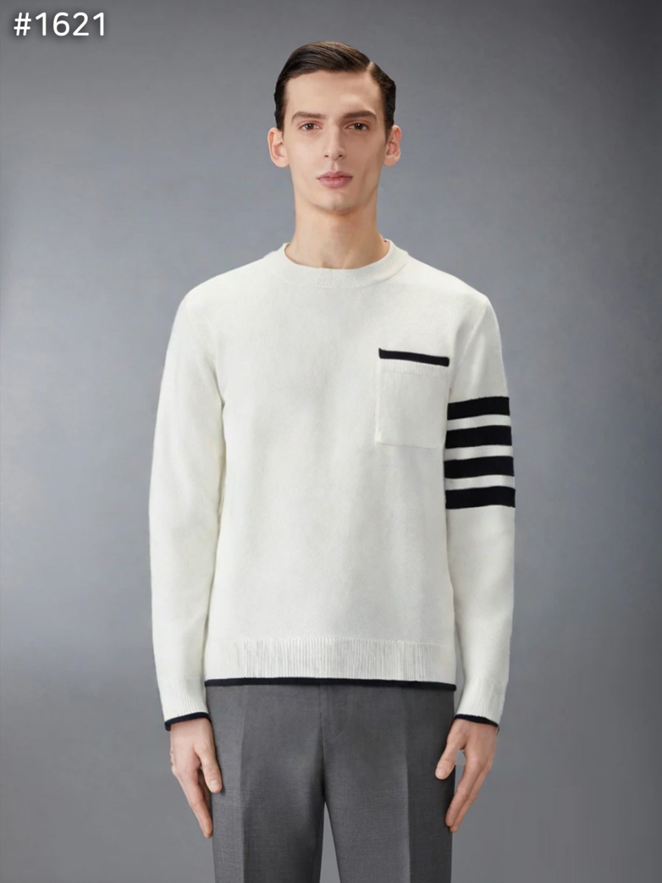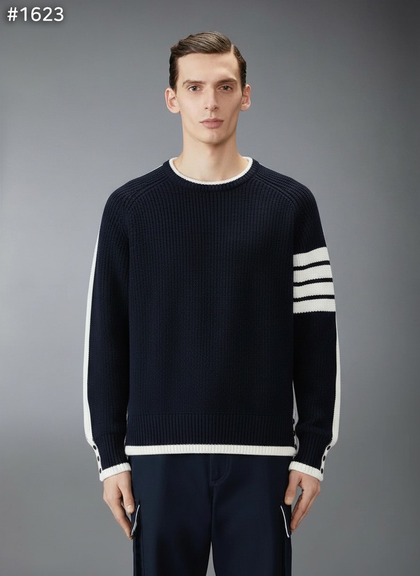 톰브라운 밀라노 스티치 티핑 크루넥 니트 스웨터