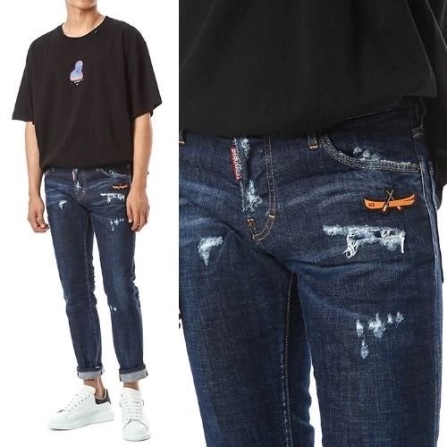 디스퀘어드 포켓 카누 러버패치 디스덧뎀 진청 워싱 데님