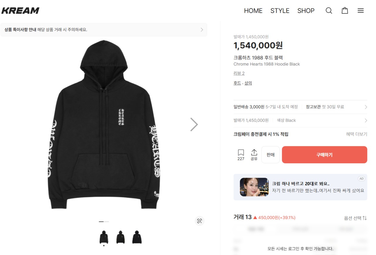 크롬하츠 1988 버티컬 로고 후드 스웨트셔츠