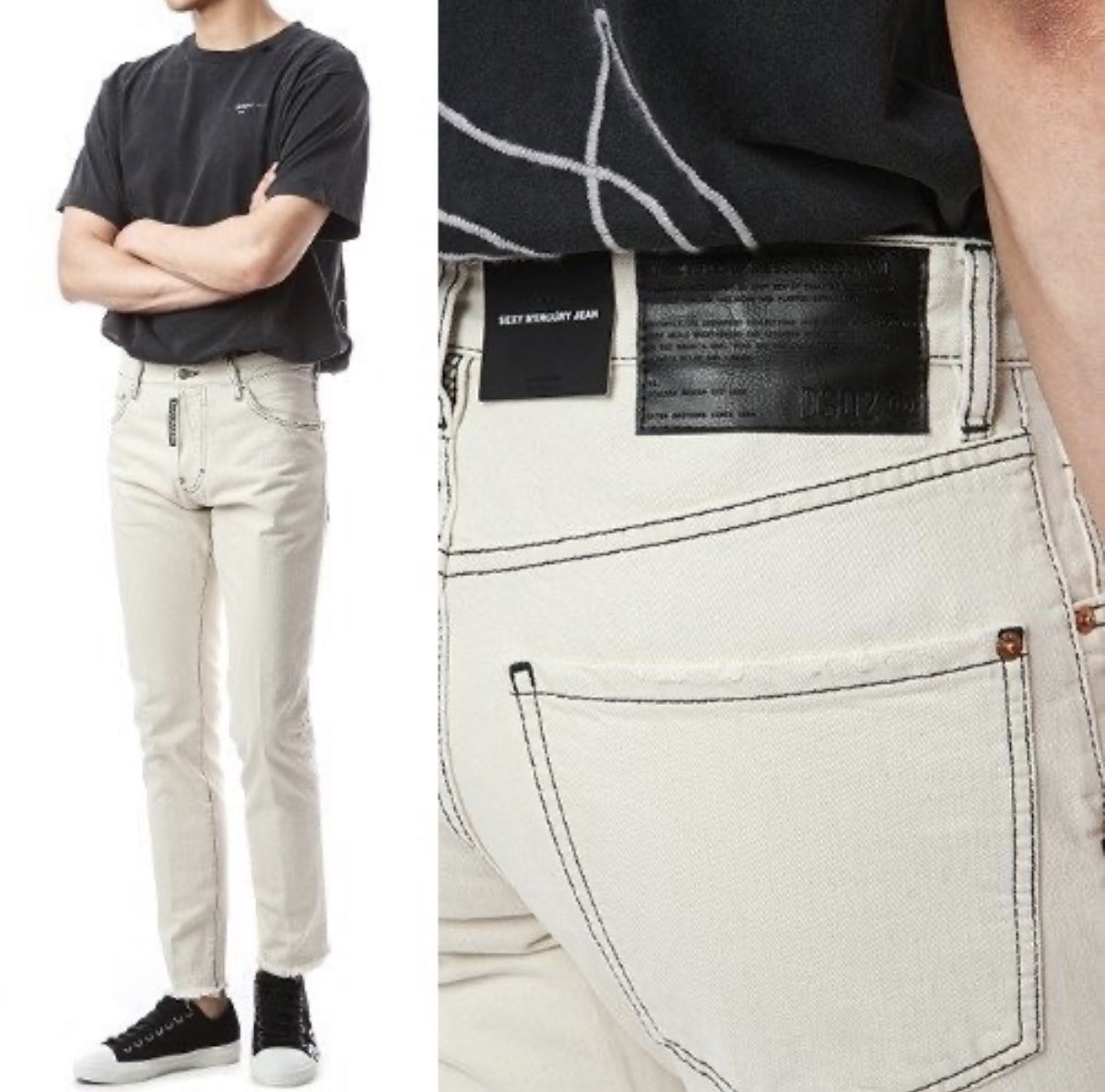 디스퀘어드 빅로고 블랙탭 블랙스티치 아이보리진(섹시머큐리핏)