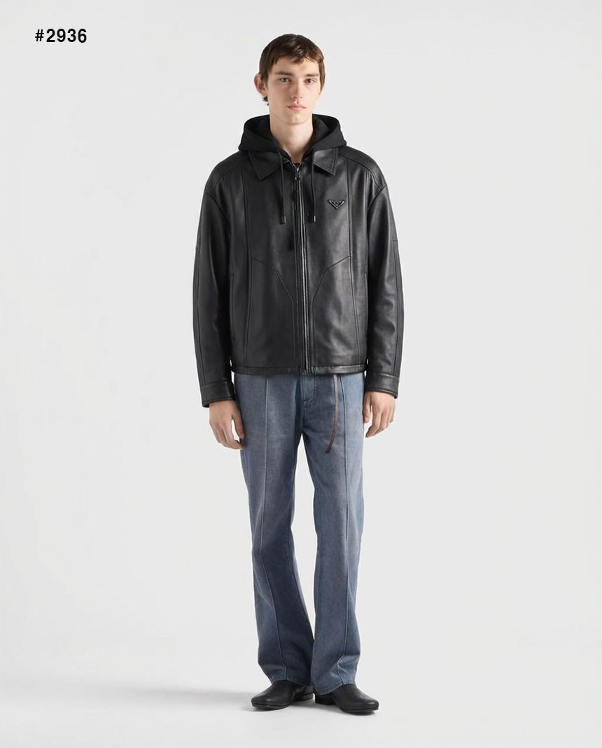 [PRADA] 프라다 삼각로고 기모 하이브리드 후드 레더 융기모 자켓
