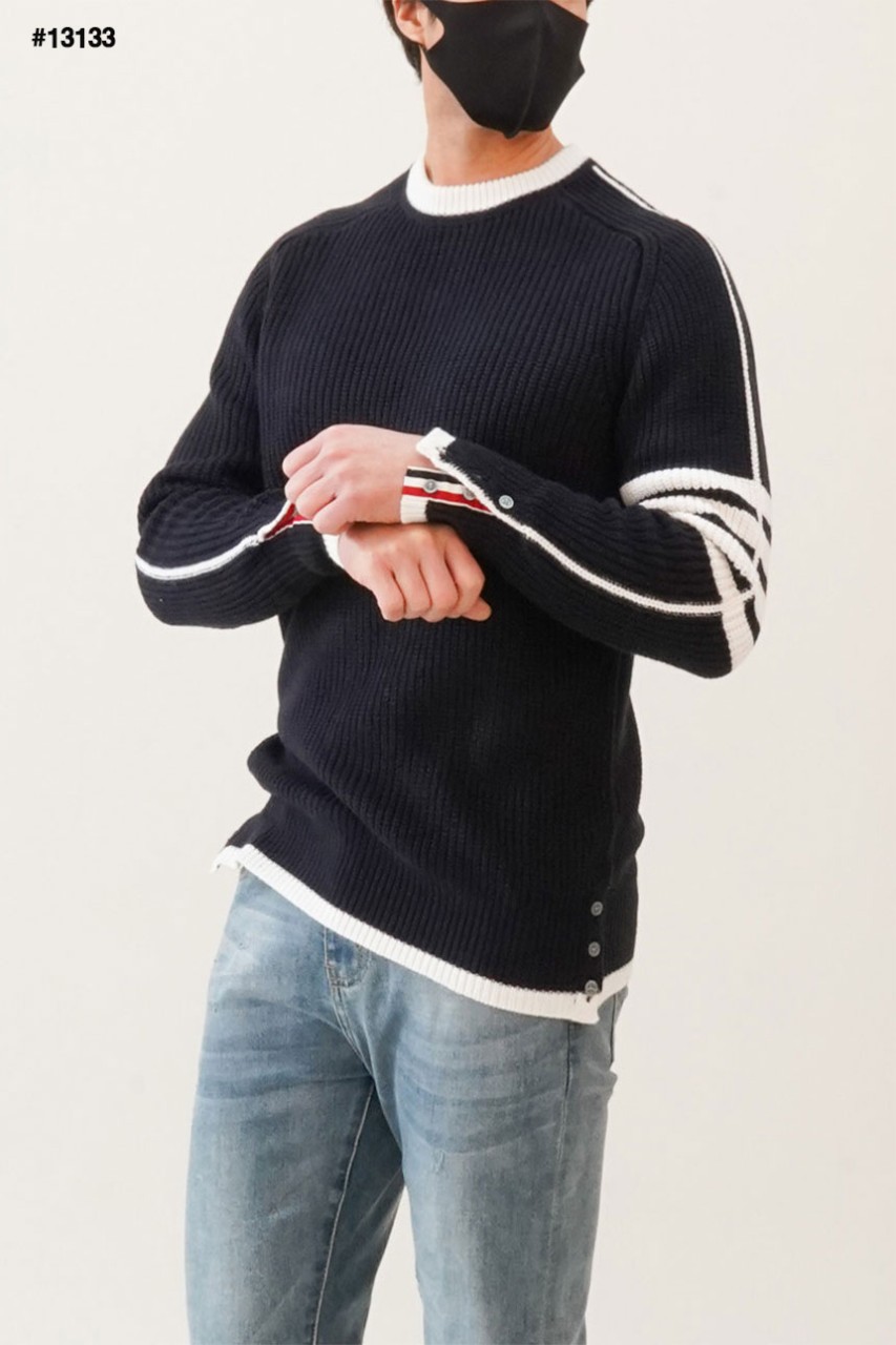[THOM BROWNE] 톰브라운 남성 소매배색 4선완장 와플니트