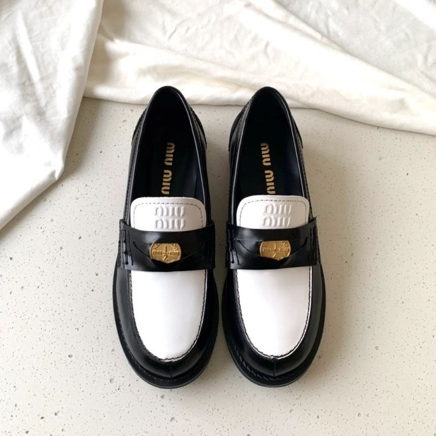 미우미우 [ miu ] 수입 브러쉬드 가죽 페니 로퍼 -투톤-