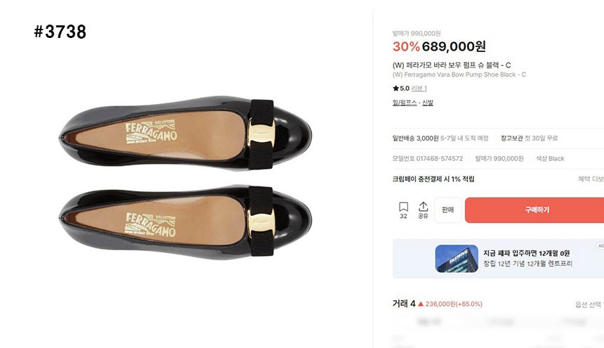 페라가모 [Ferragamo] 수급 바라보우 펌프스 힐