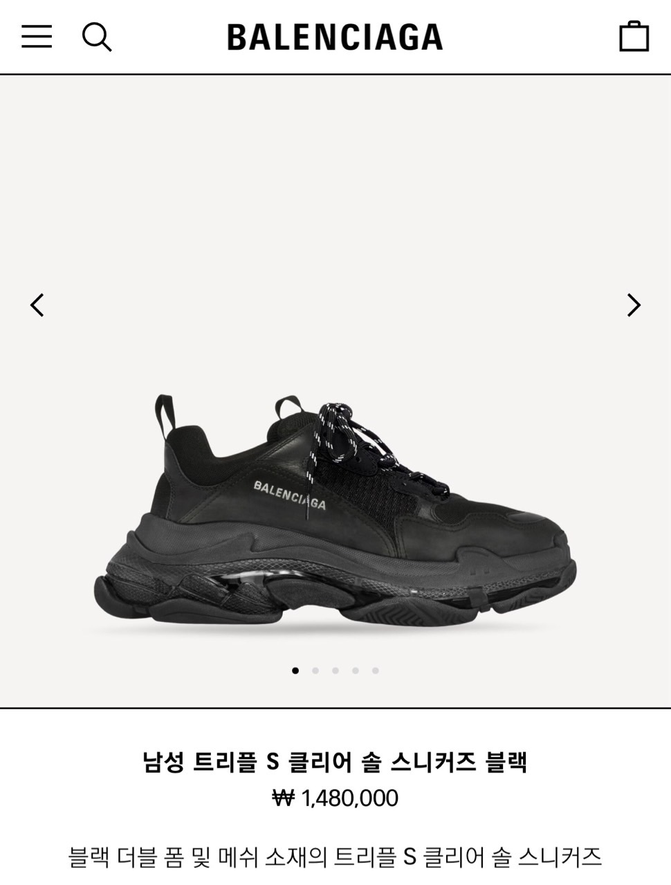 발렌시아가 트리플 S 클리어 솔 스니커즈 블랙