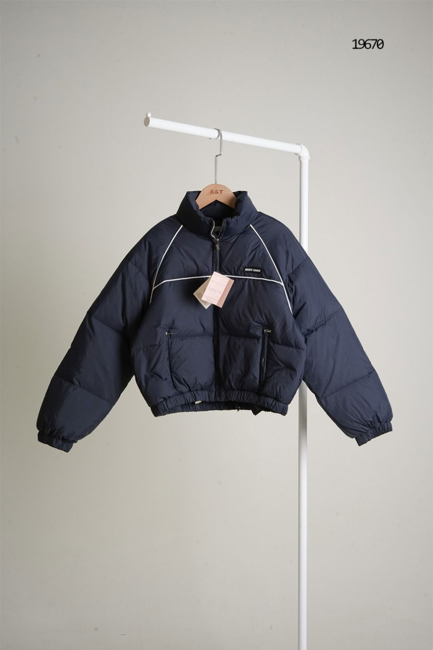 미우미우 [MIU MIU] 테크니컬 폰지 다운 자켓 네이비