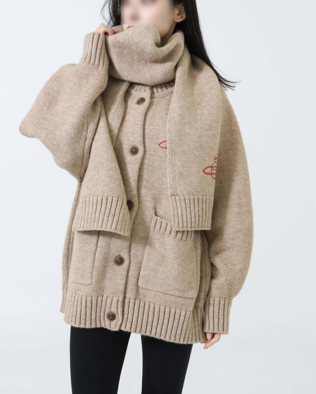 비비안웨스트우드 [ Vivi*nne Westwood ] 수입 새턴 자수 가디건 + 머플러 SET -베이지-