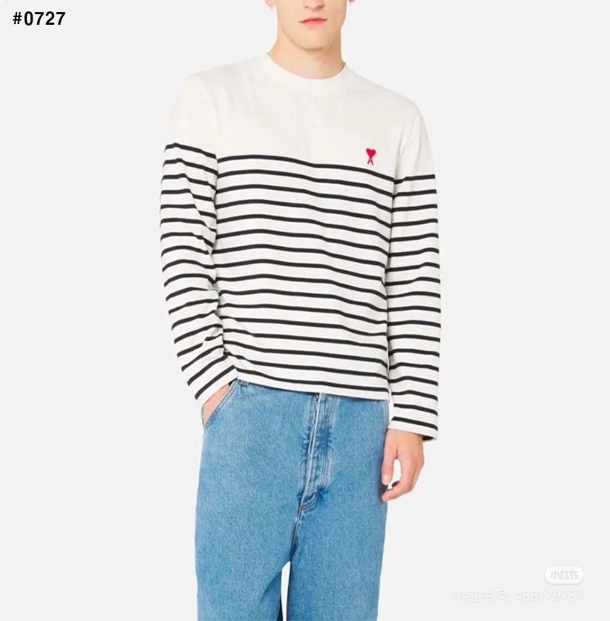 [AMI] 아미 스몰 로고 스트라이프 니트 긴팔